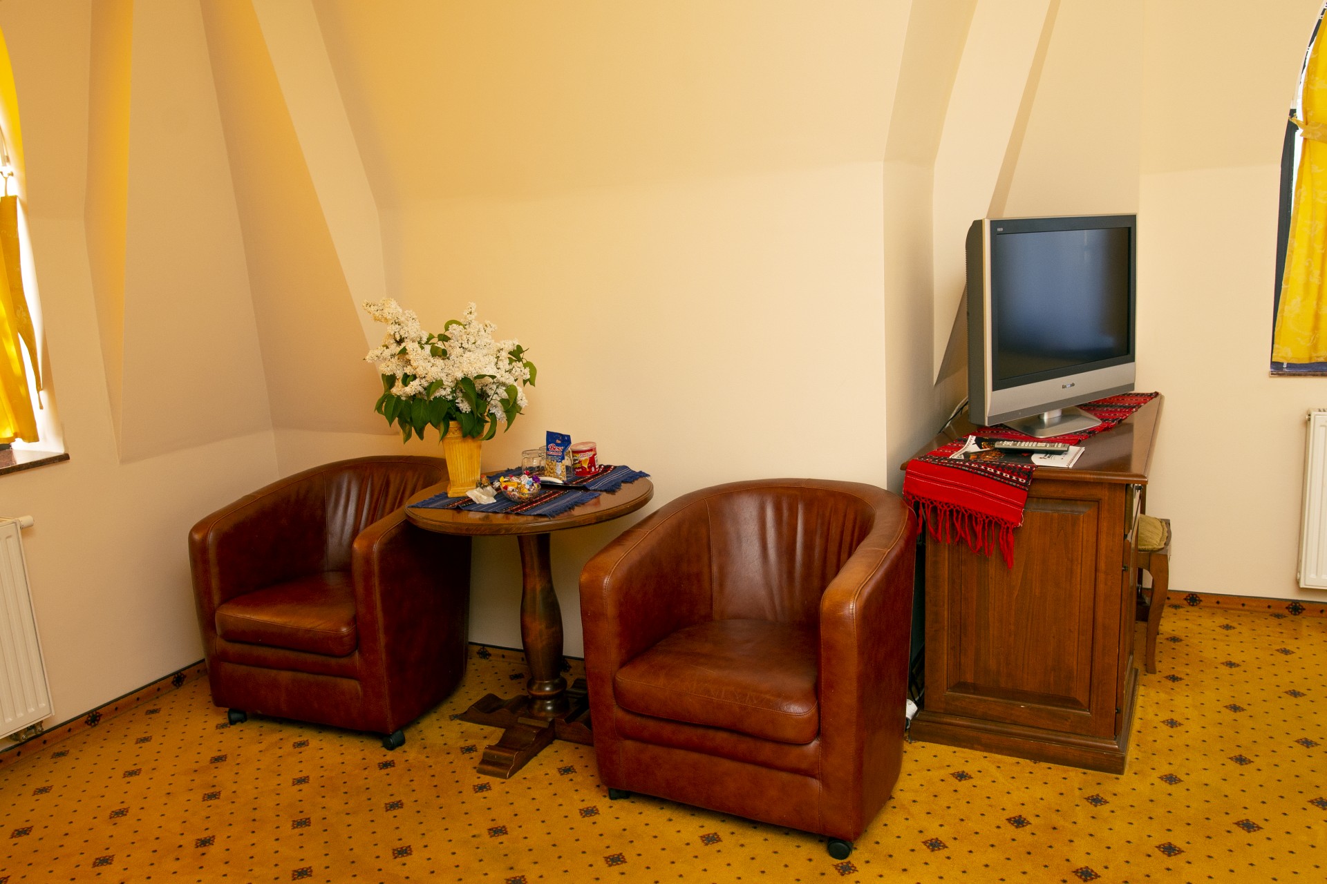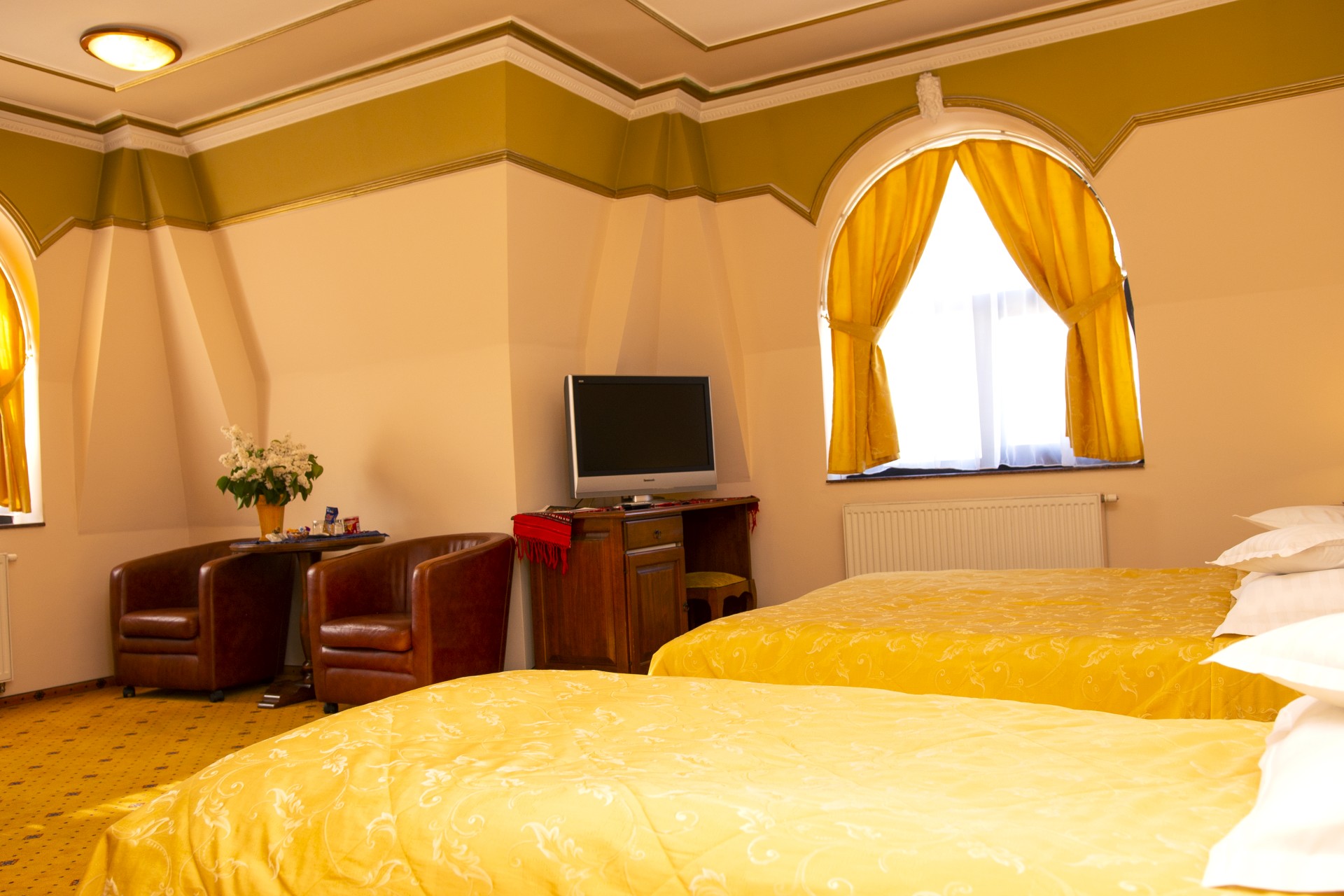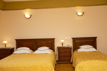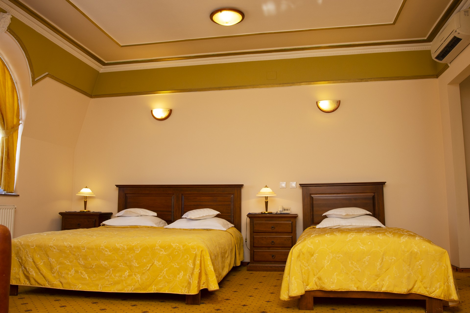 Camera triplă este o camera luminoasă cu pat matrimonial sau cu două paturi, cu un design inedit, mobilier din lemn masiv, finisaje de inalta calitate. Camera are suprafata de 35 mp, dotată cu aer condiționat, telefon și dispune de o baie de dimensiuni generoase.